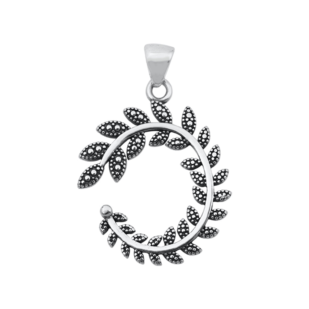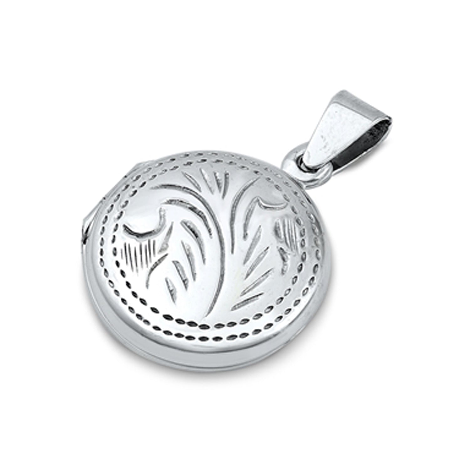 Small Floral Vine Design Round Picture Locket Pendant in Sterling Silver