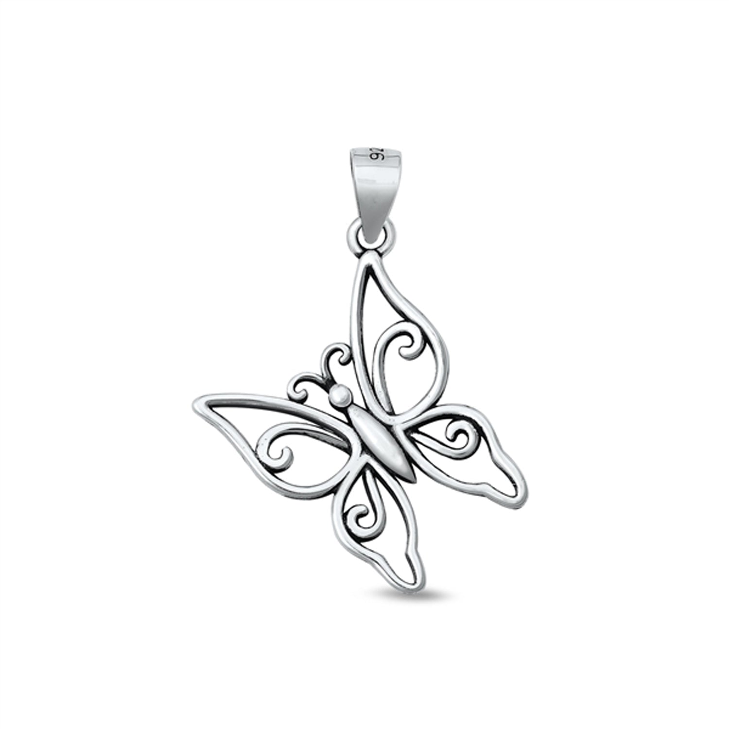 Scroll Motif Butterfly Pendant in Sterling Silver