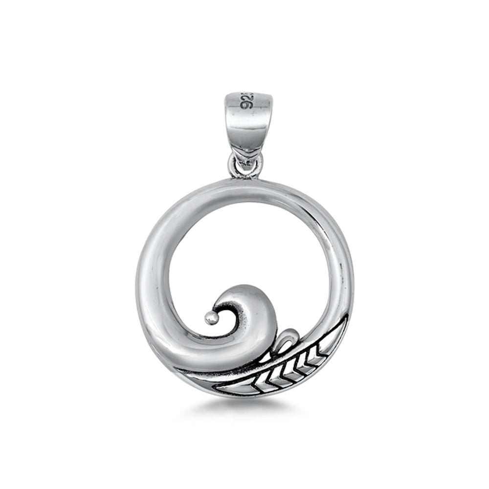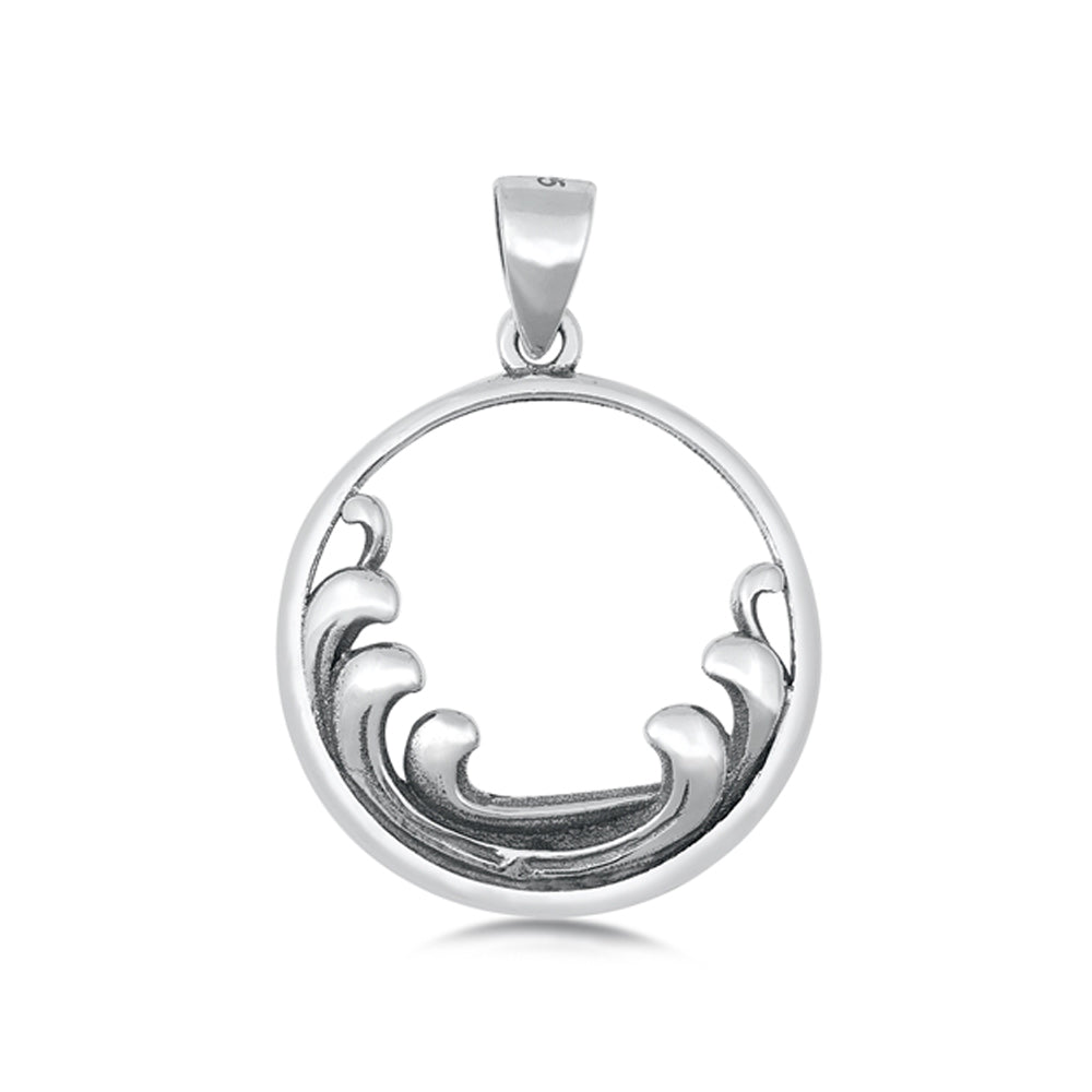 Wave in a Circle Pendant Polish Finish in Sterling Silver