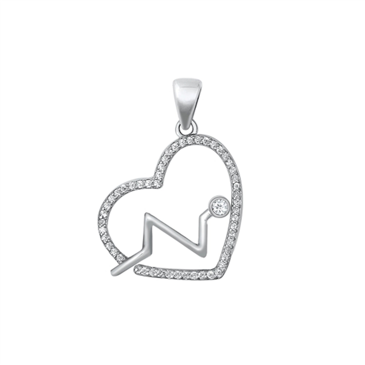 Winged Cross with Tiny Heart Pendant in Sterling Silver
