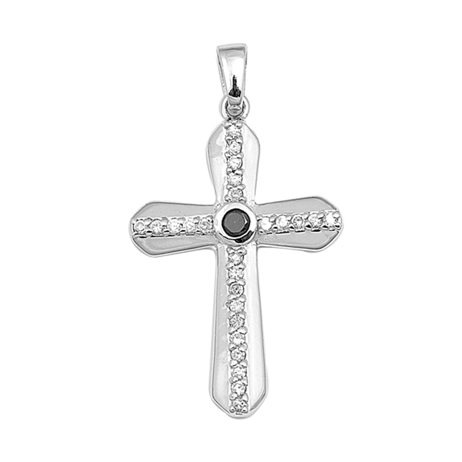Flat Cross Cubic Zirconia Pendant in Sterling Silver