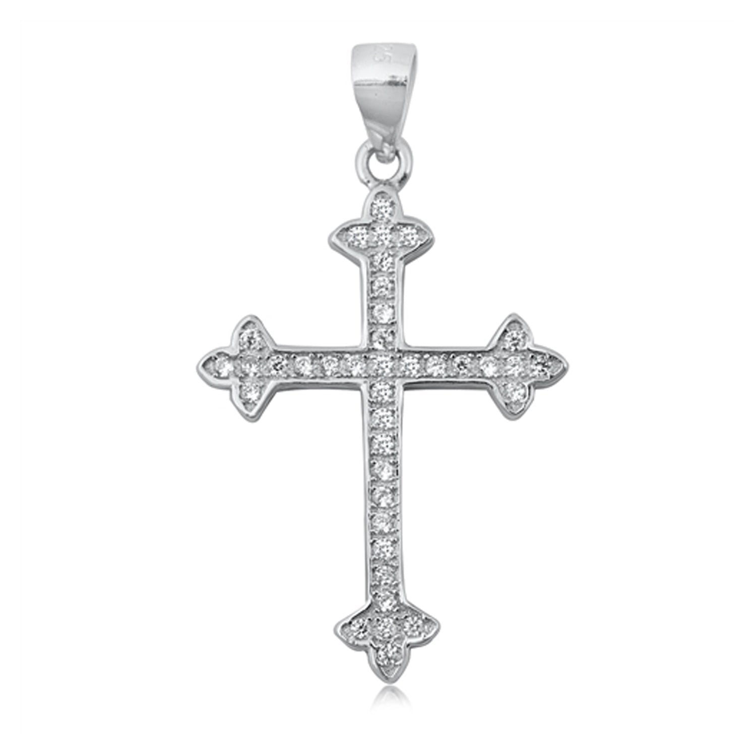 Fleur de lis Catholic Cross Pendant in Sterling Silver
