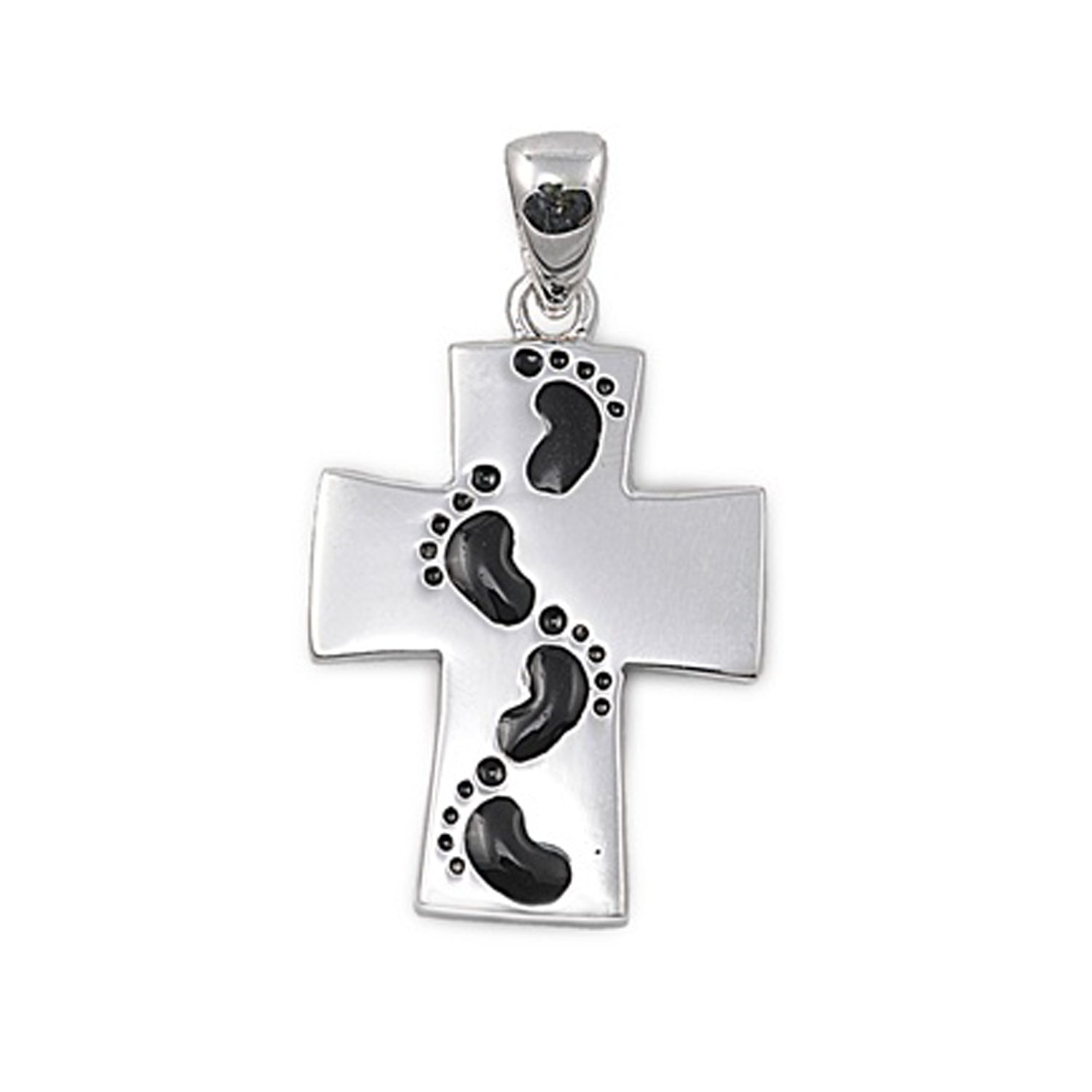Footsteps in the Sand Cross Pendant in Sterling Silver