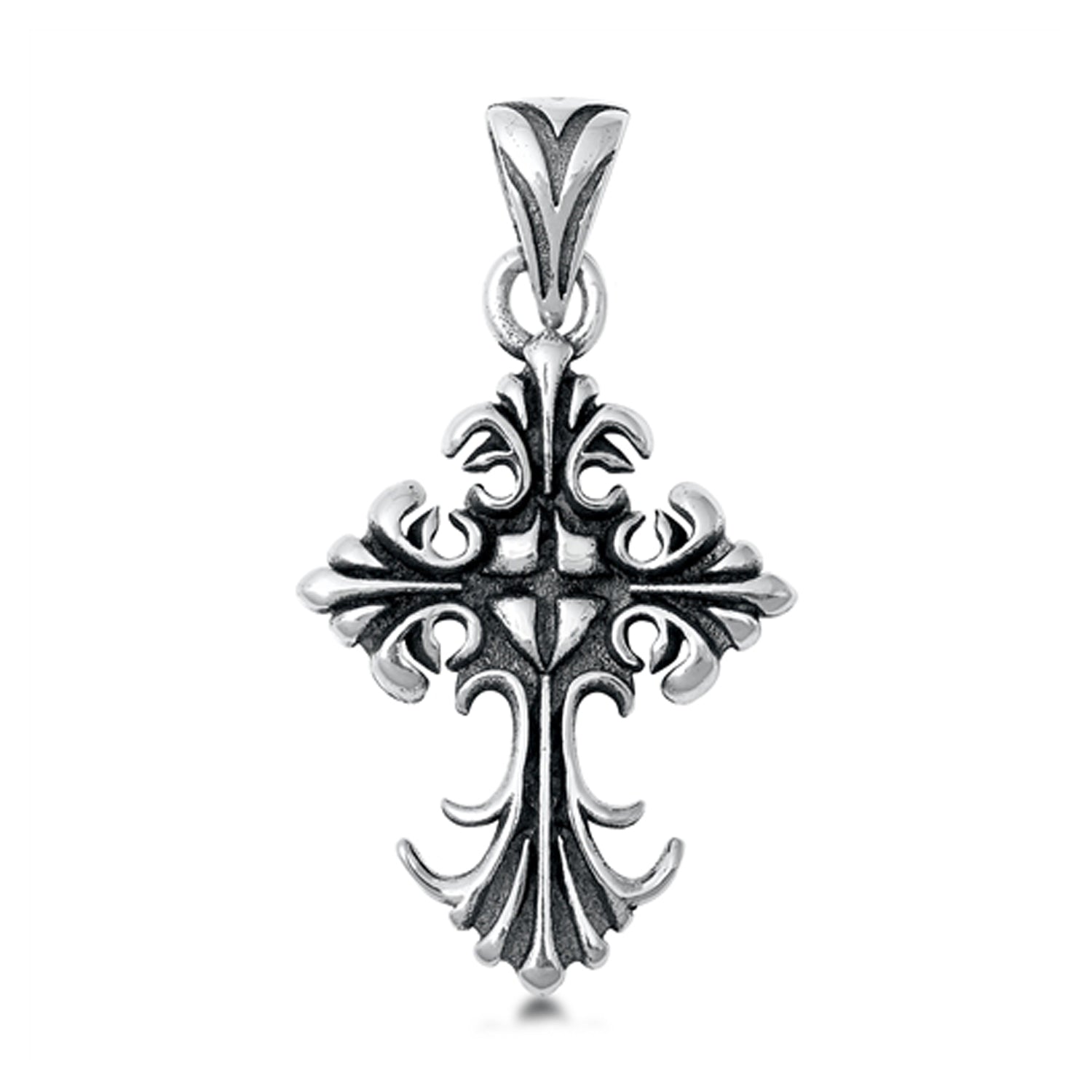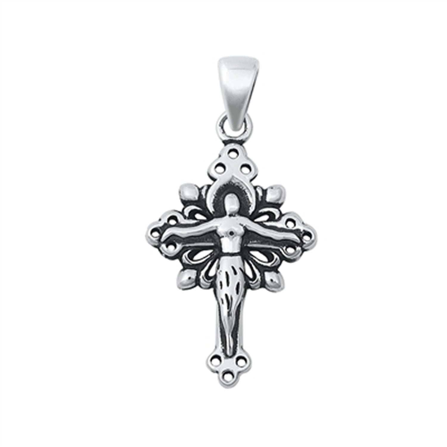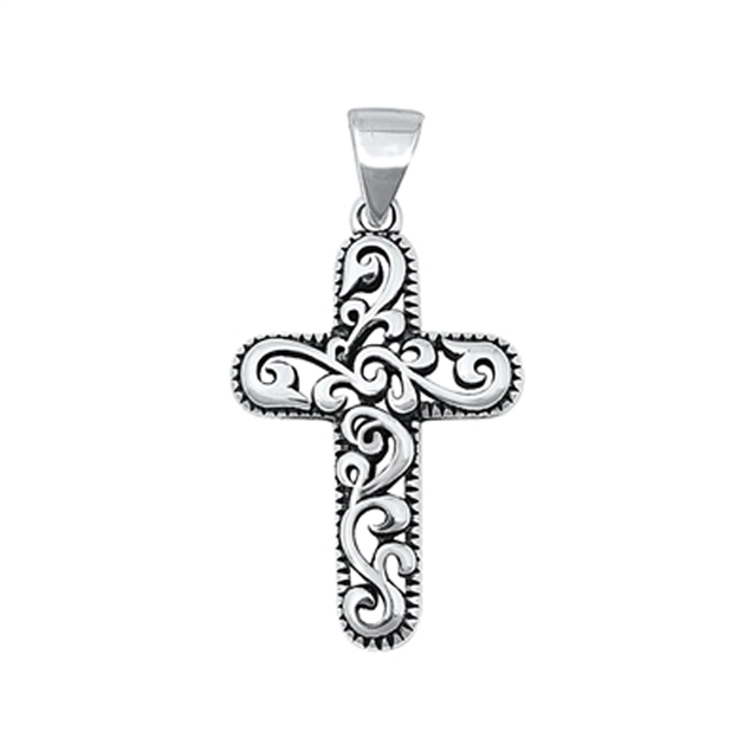 Filigree Cross Cruficix Pendant in Sterling Silver