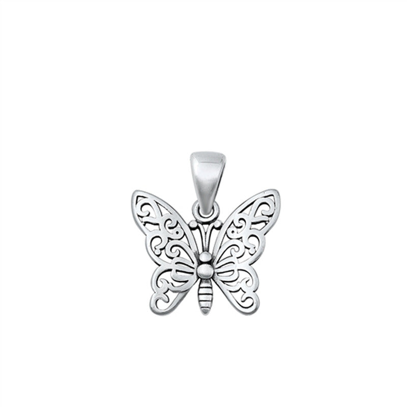 Filigree Sideway Butterfly Pendant in Sterling Silver