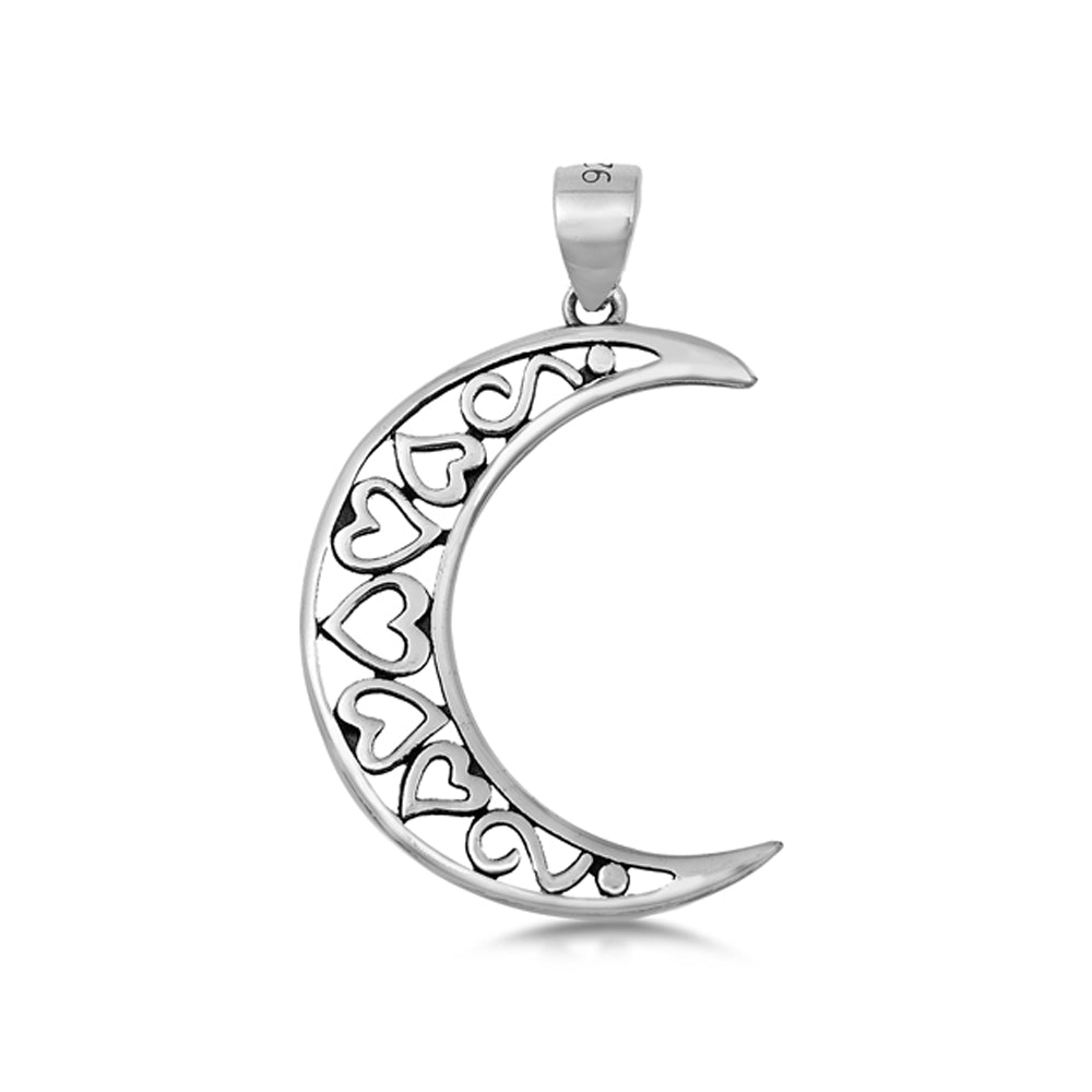 Hearts Motif Crescent Moon Pendant in Sterling Silver