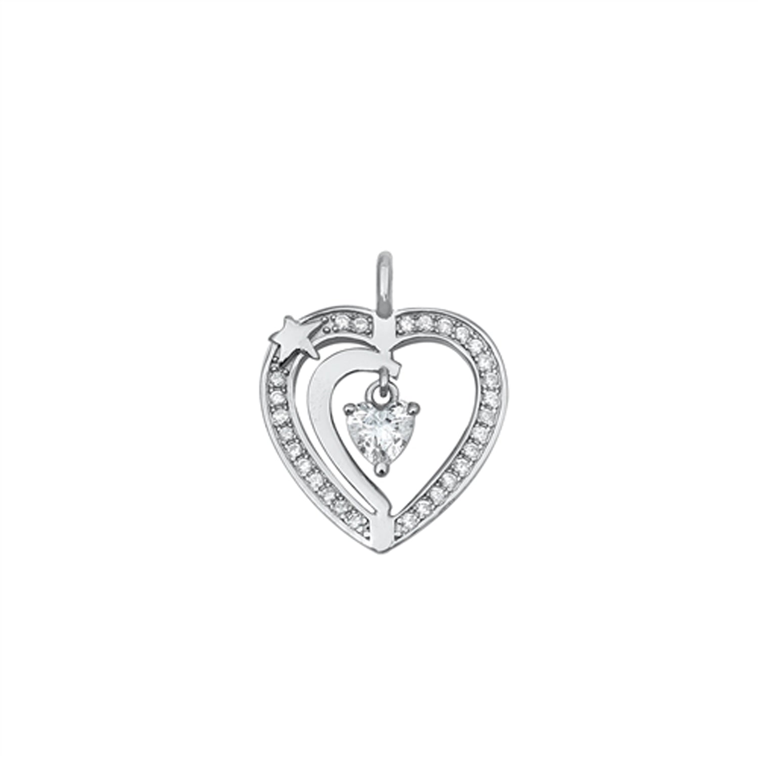 Heart Motif with Tiny Star Pendant in Sterling Silver