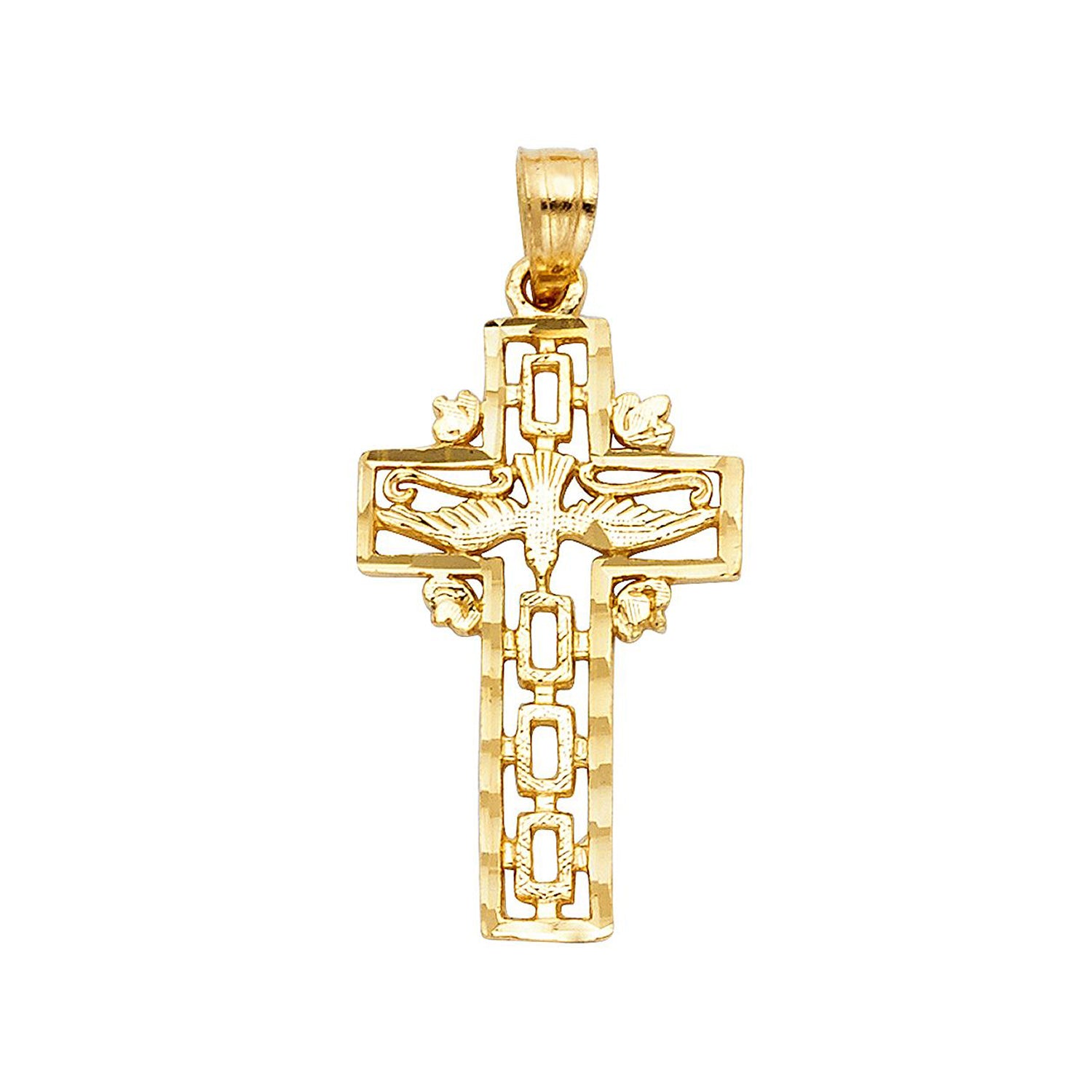 Holy Spirit Freedom Cross Pendant in 14k Yellow Gold