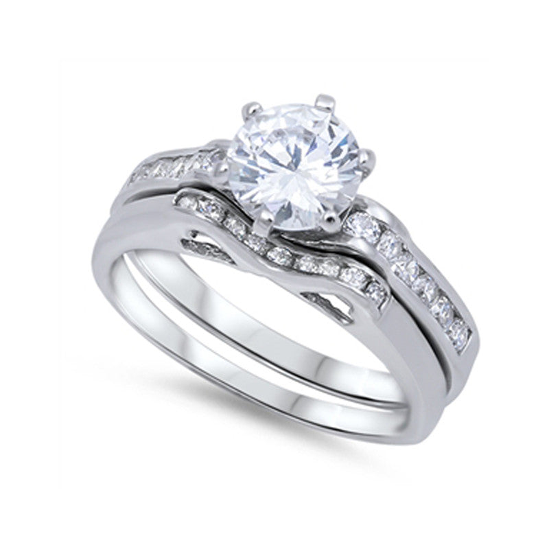 Round Cut Channel Cubic Zirconia Bridal Wedding Ring Set