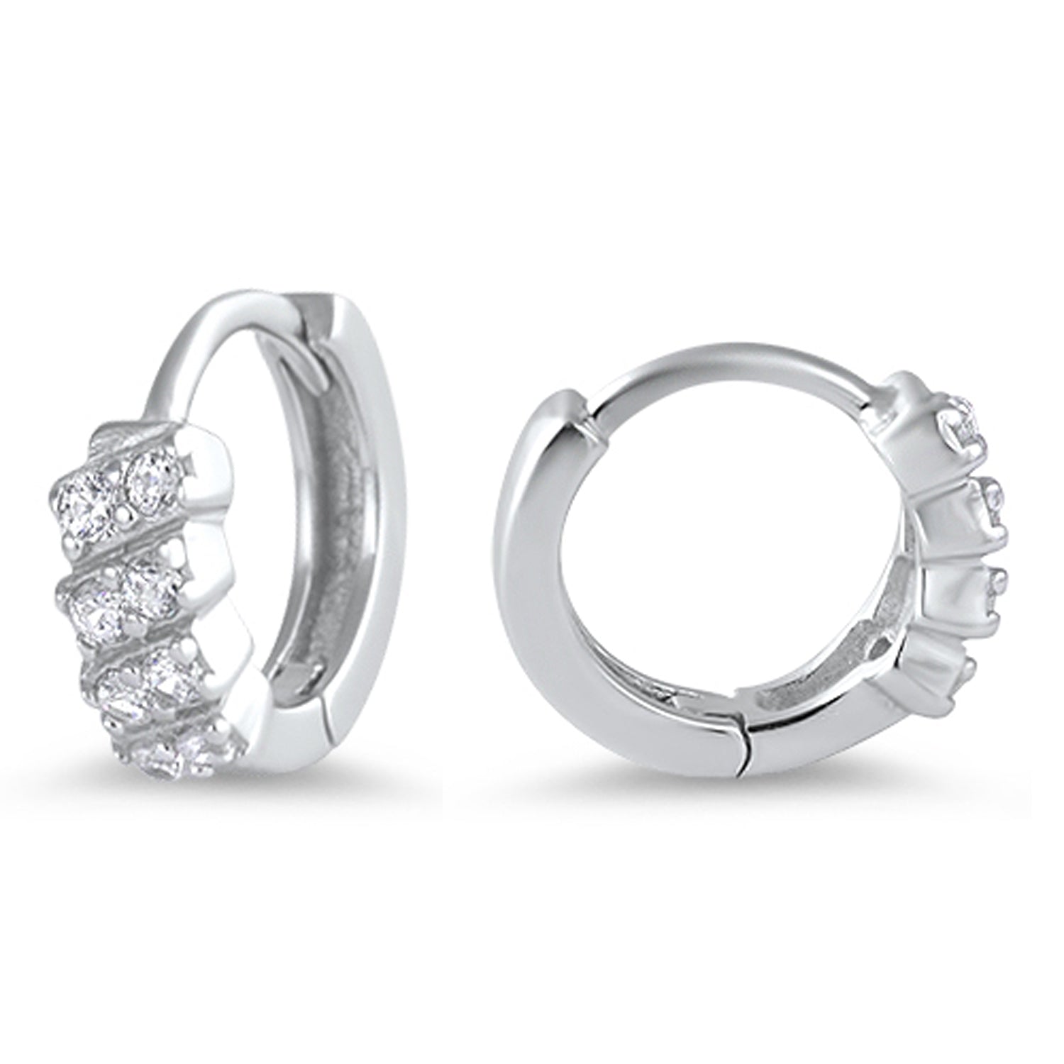 Small Huggie Earrings with Cubic Zirconia in Sterling Silver