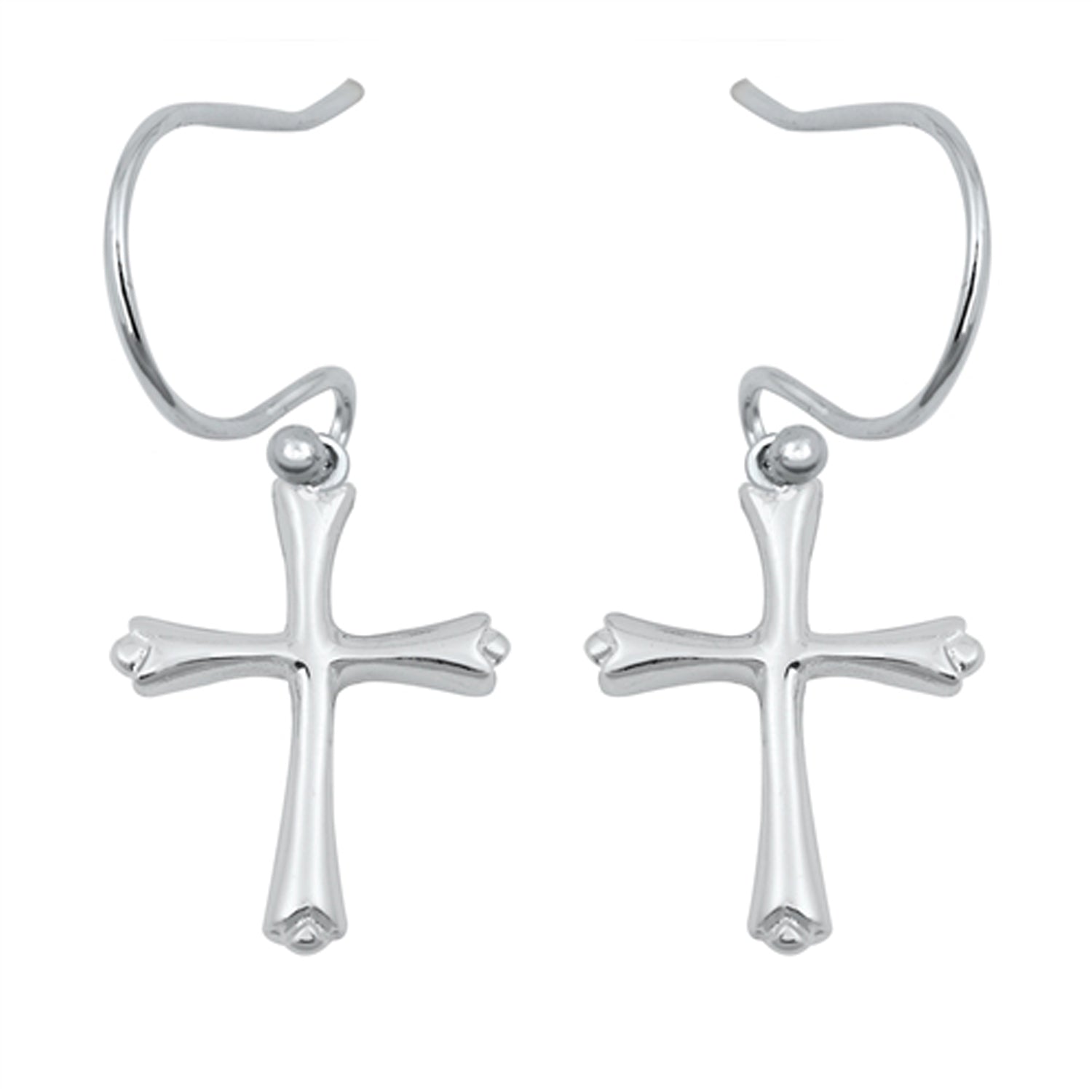 Unconditional Love Cross Dangle Earrings in Sterling Silver