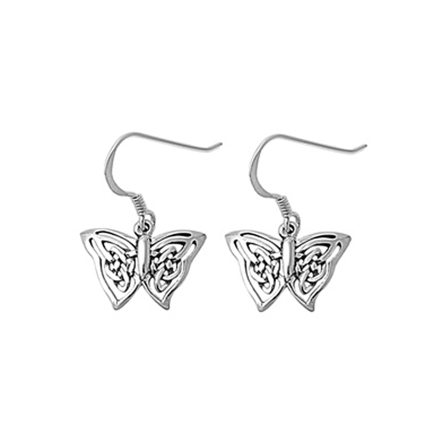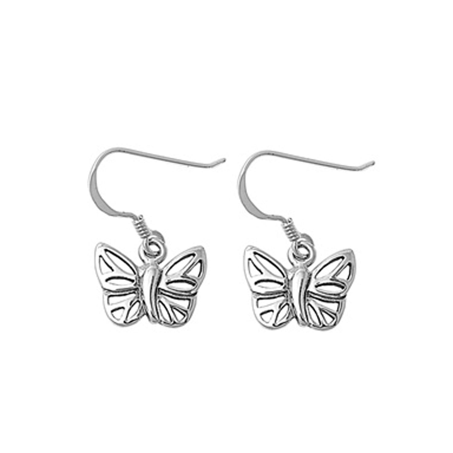 Intricate Design Butterfly Dangle Earrings Sterling Silver
