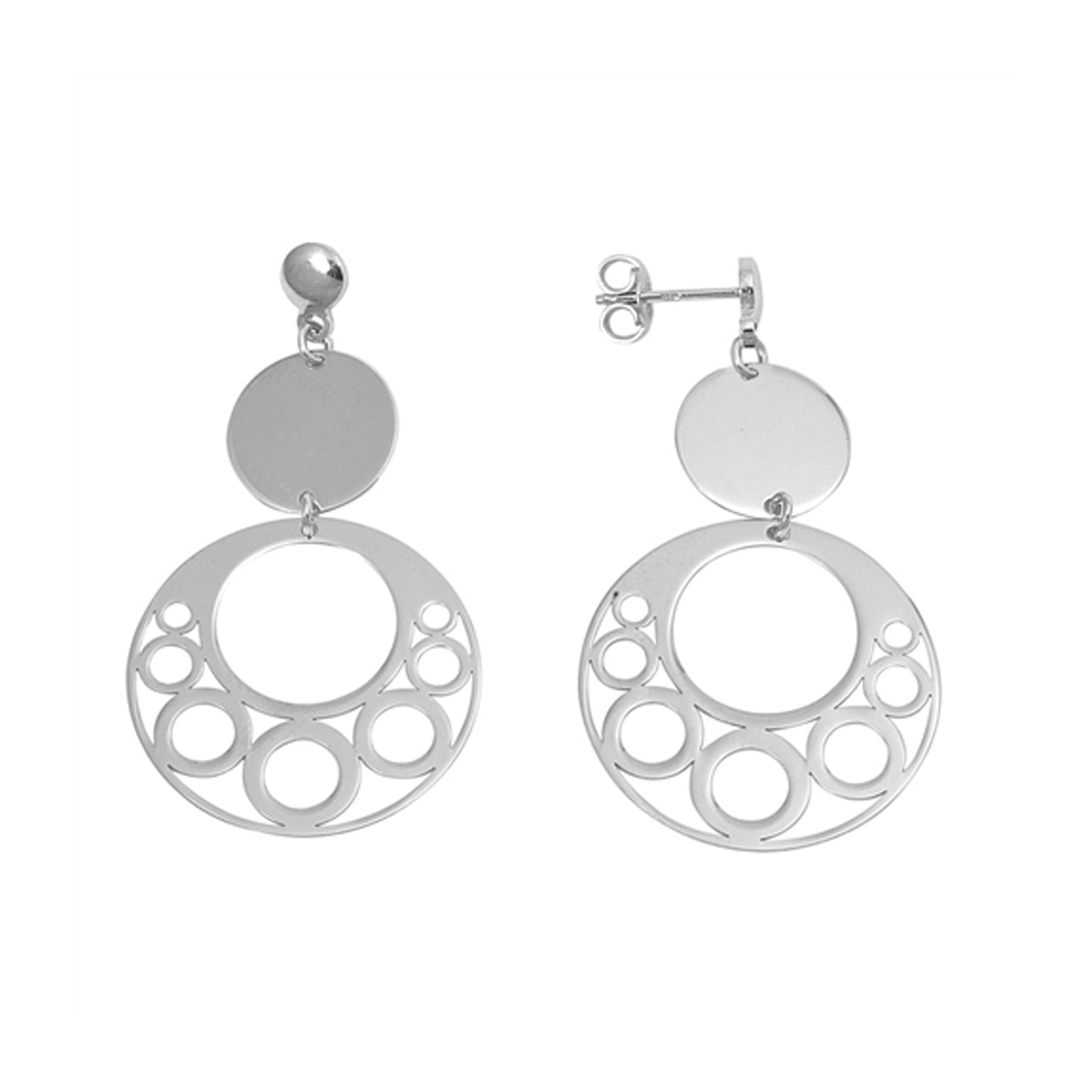 Layered Openwork Disc Dangle Earrings Sterling Silver