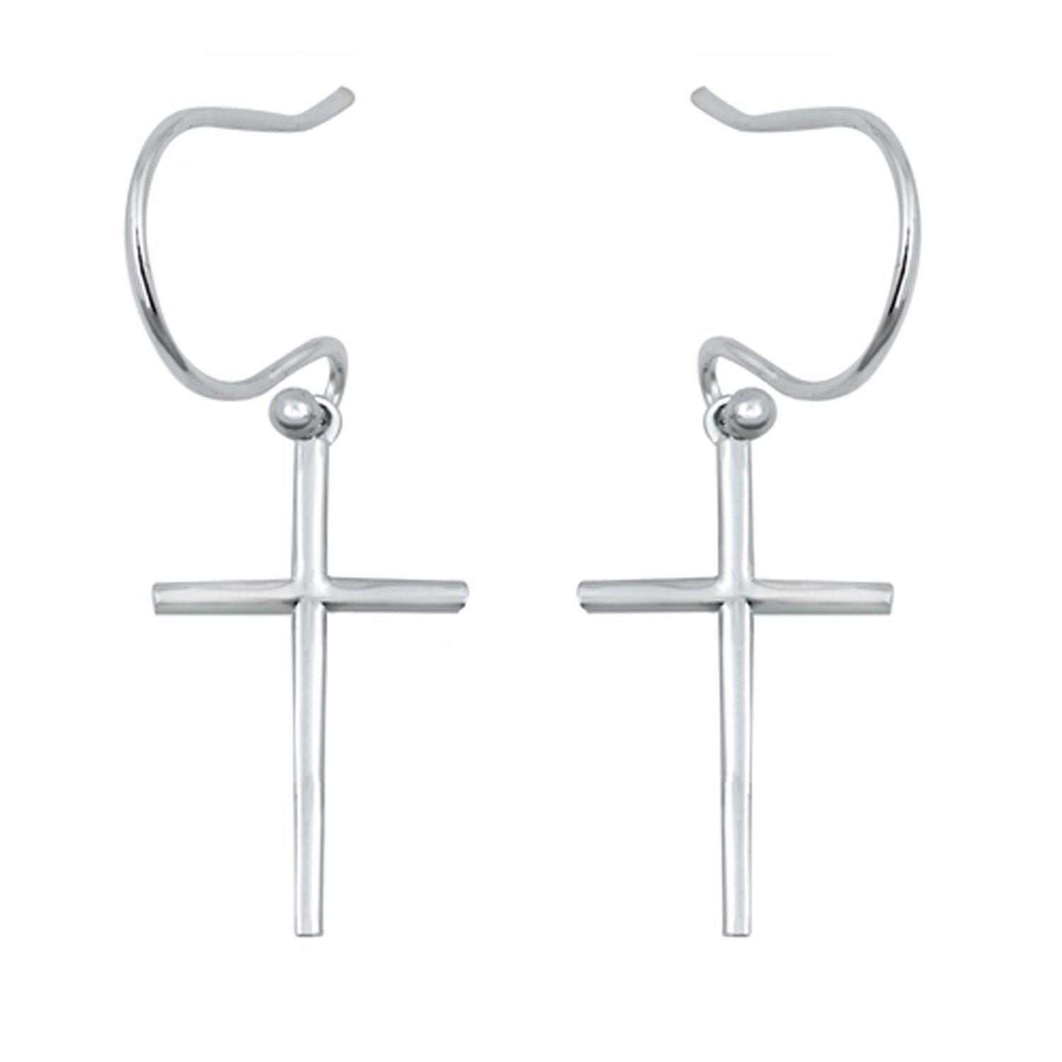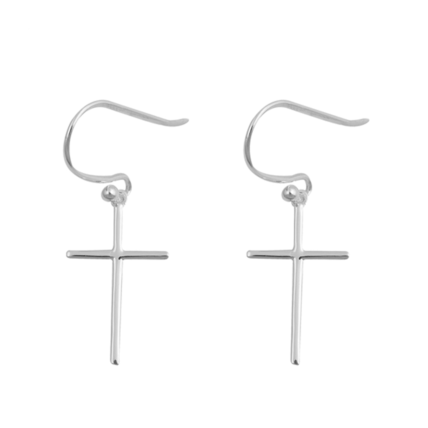 Plain Slender Cross Dangle Earrings Sterling Silver