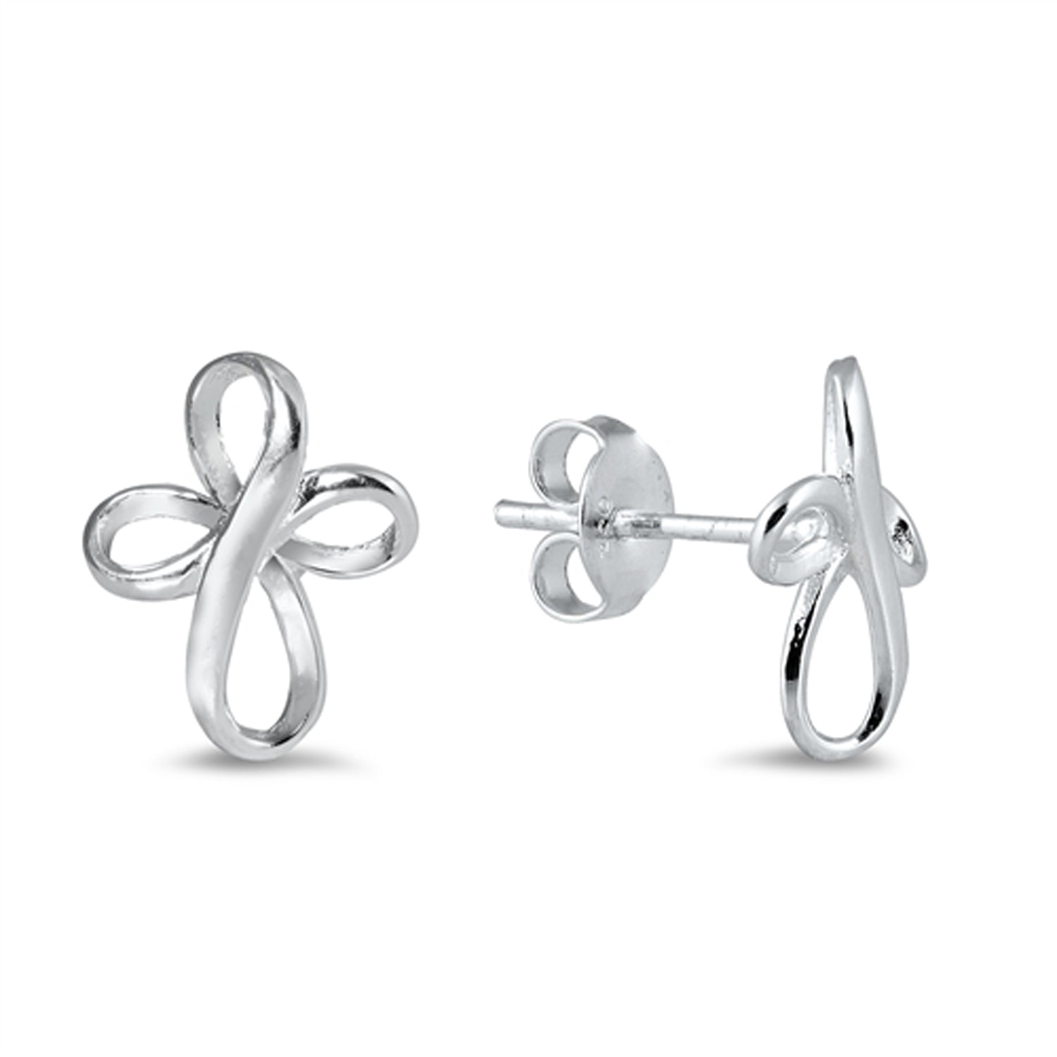 Elegant Twist Cross Stud Earrings in Sterling Silver
