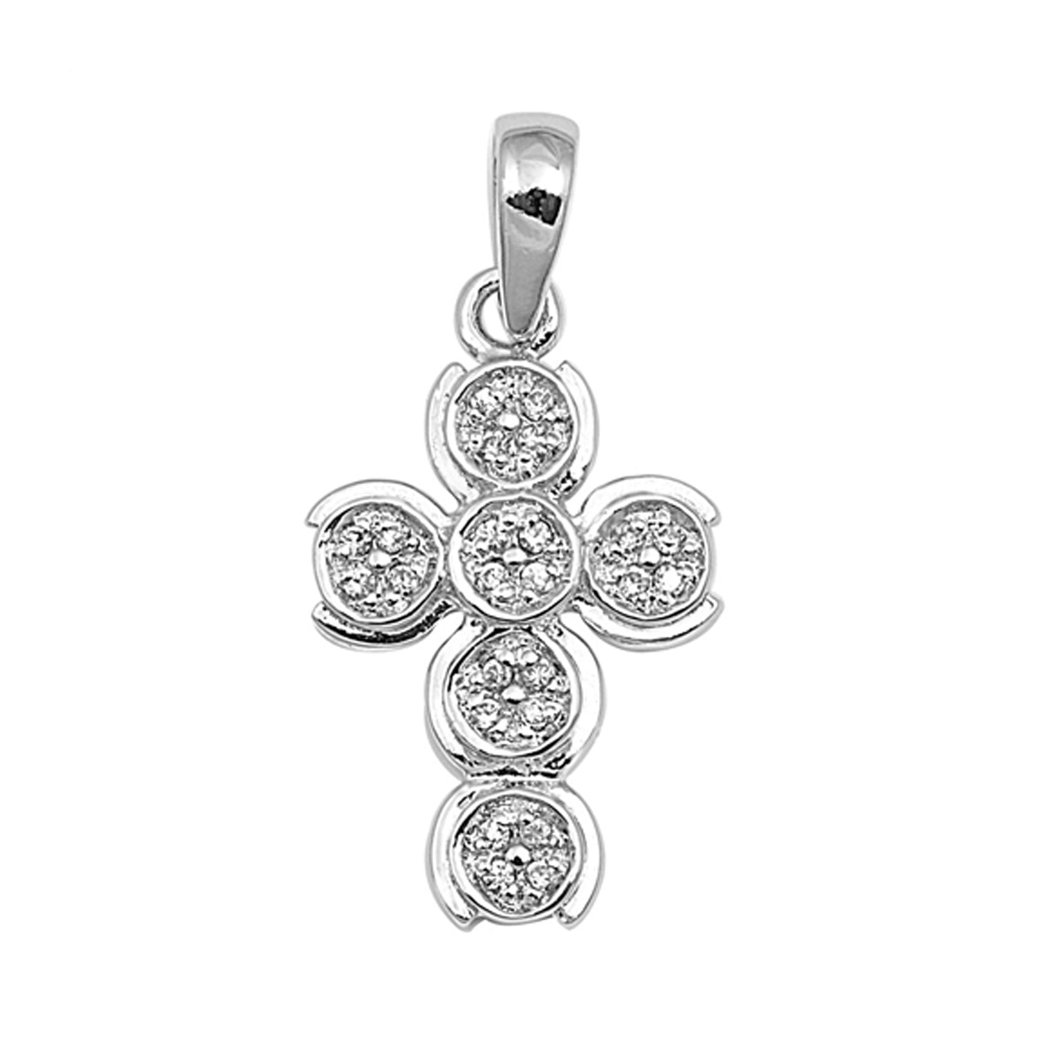 Round Cubic Zirconia Cross Pendant in Sterling Silver