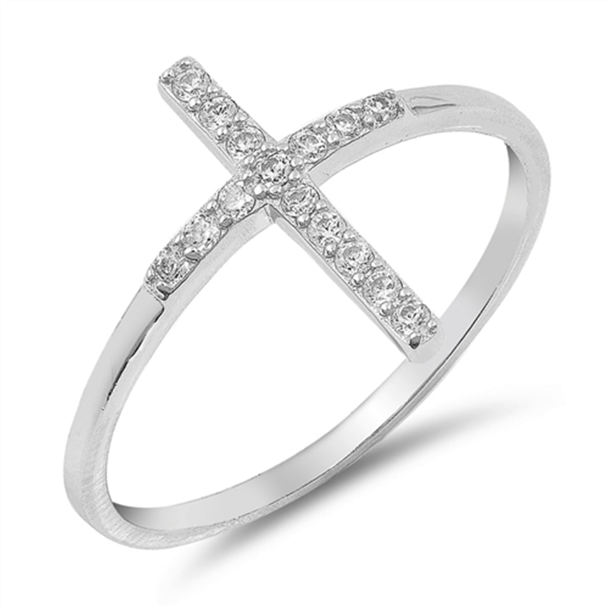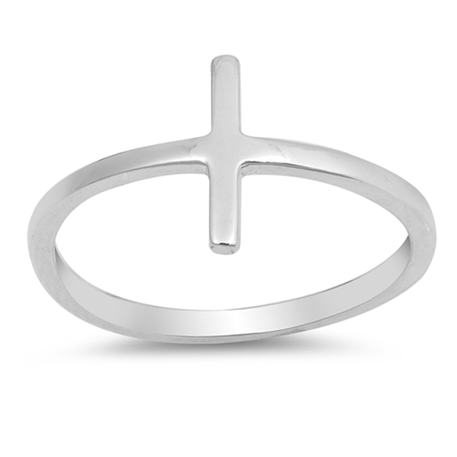 Slender Cross Minimalist Ring Cubic Zirconia Accent in Sterling Silver
