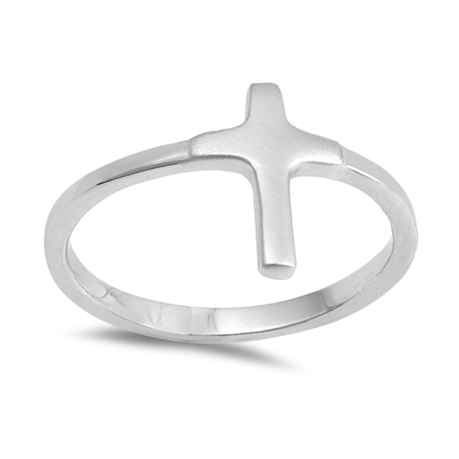 Satin Finish Cross Minimalist Ring in Sterling Silver