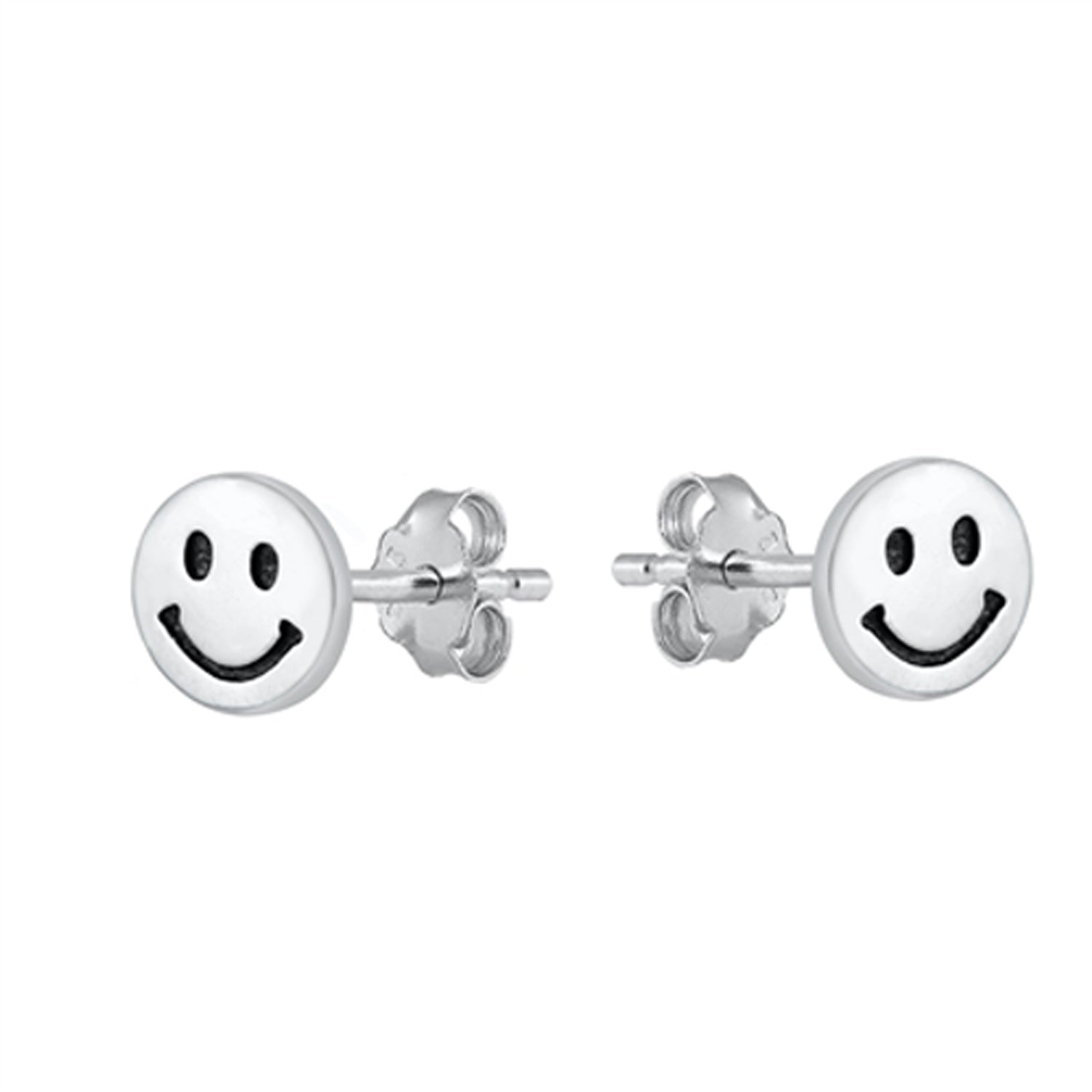 Minimalist Joyful Face Stud Earrings in Sterling Silver