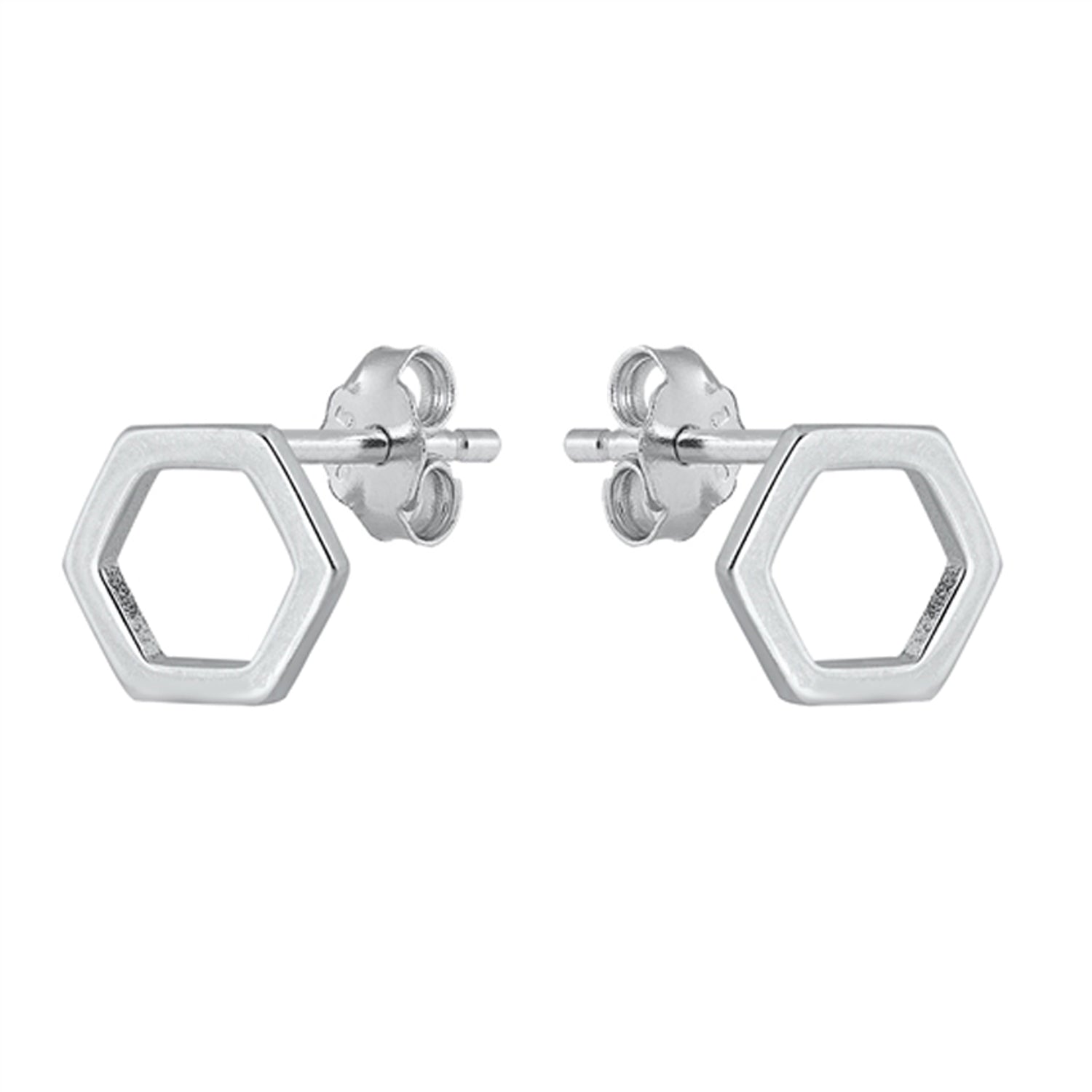 Shapes Collection Hexagon Minimalist Stud Earrings in Sterling Silver