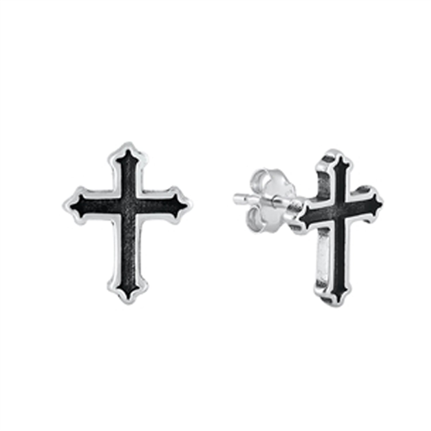 Medieval Cross Minimalist Stud Earrings in Sterling Silver