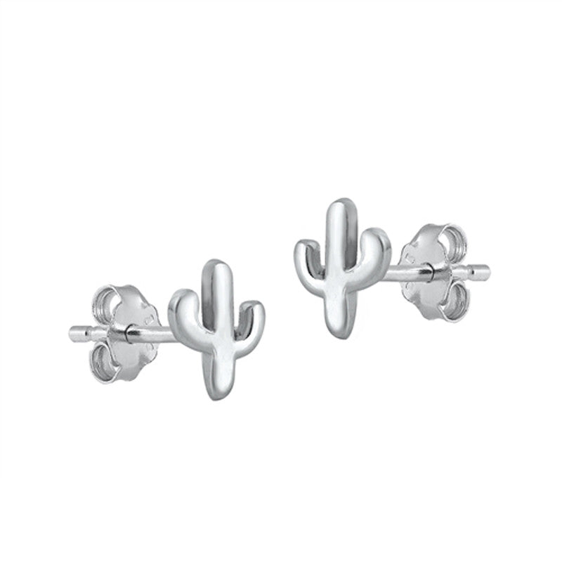 Minimalist Cactus Stud Earrings in Sterling Silver