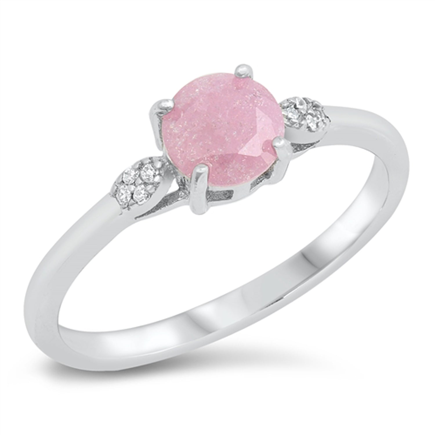 October Birthstone Pink Cubic Zirconia Solitaire Side Stone Ring in Sterling Silver