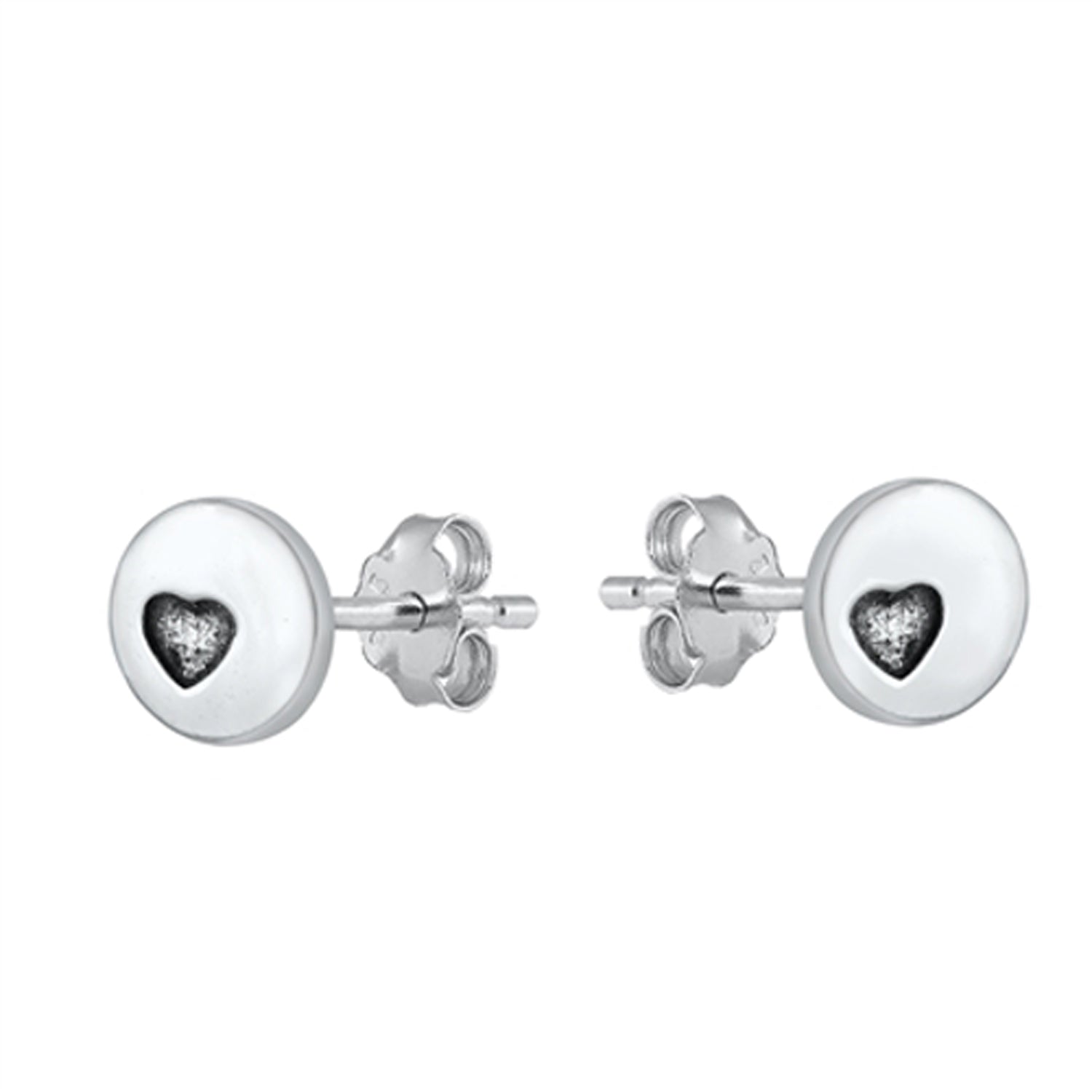 Tiny Heart Minimalist Round Stud Earrings in Sterling Silver