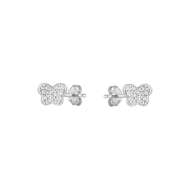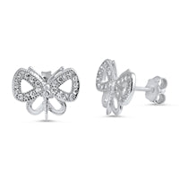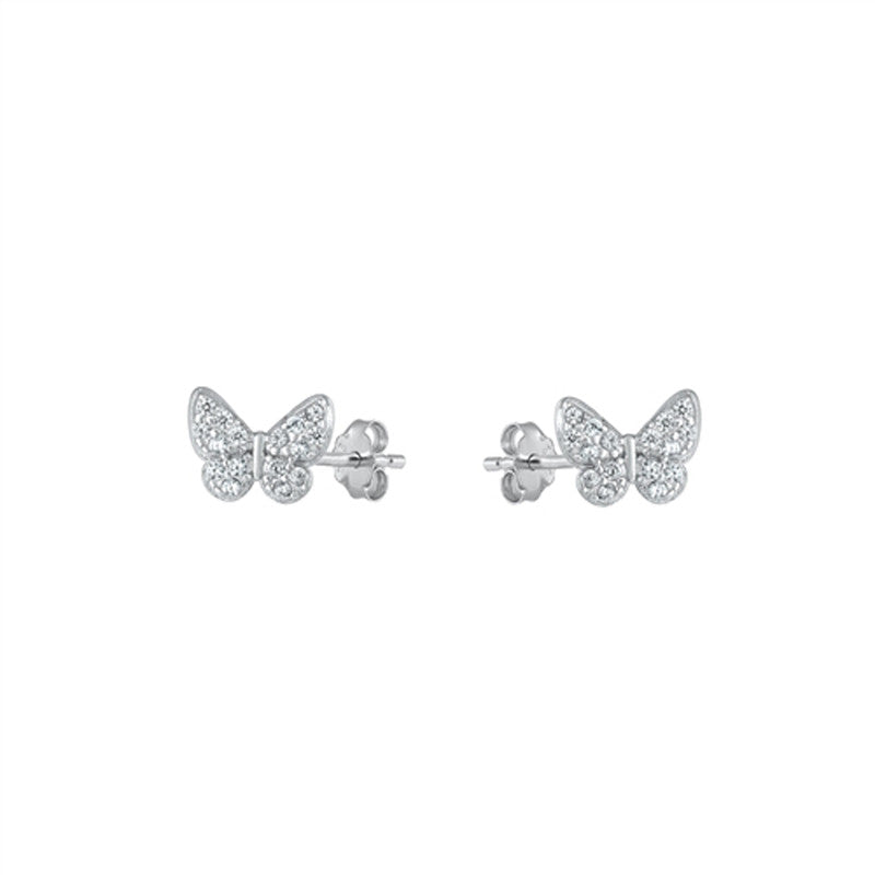 Dainty Butterfly Cubic Zirconia Accent Stud Earrings in Sterling Silver