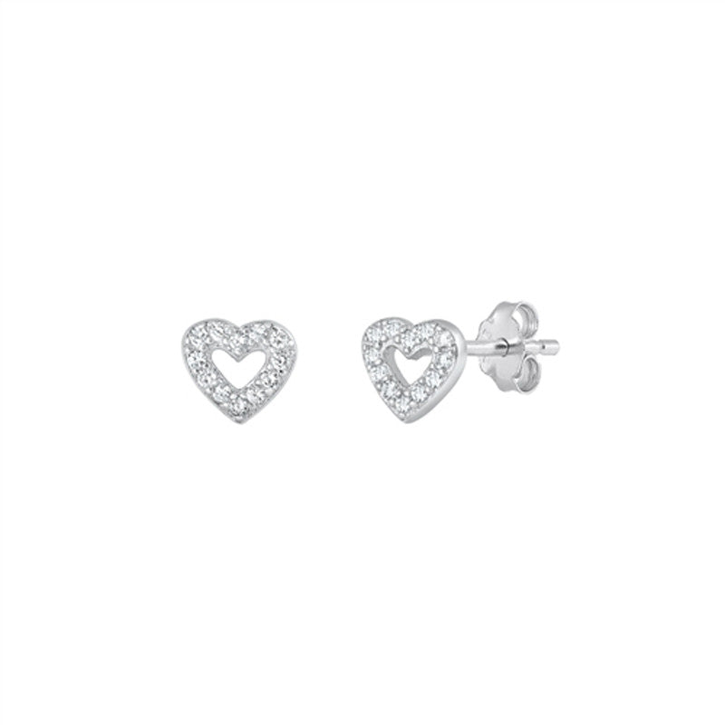 Tiny Heart Shaped Stud Earrings with Cubic Zirconia in Sterling Silver