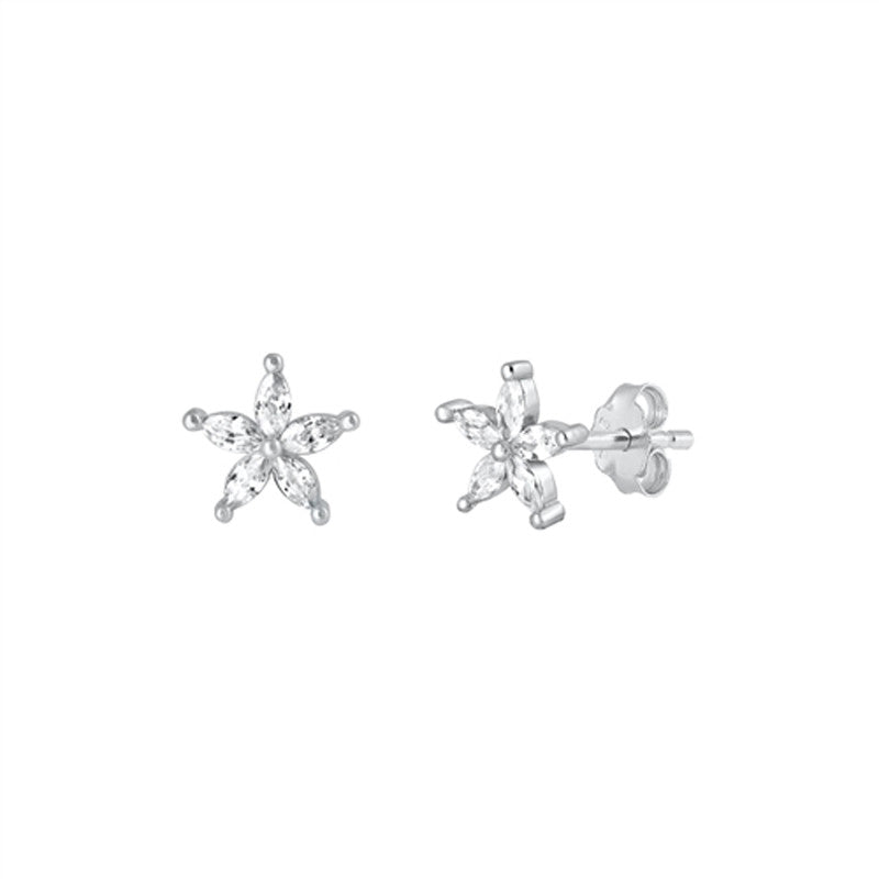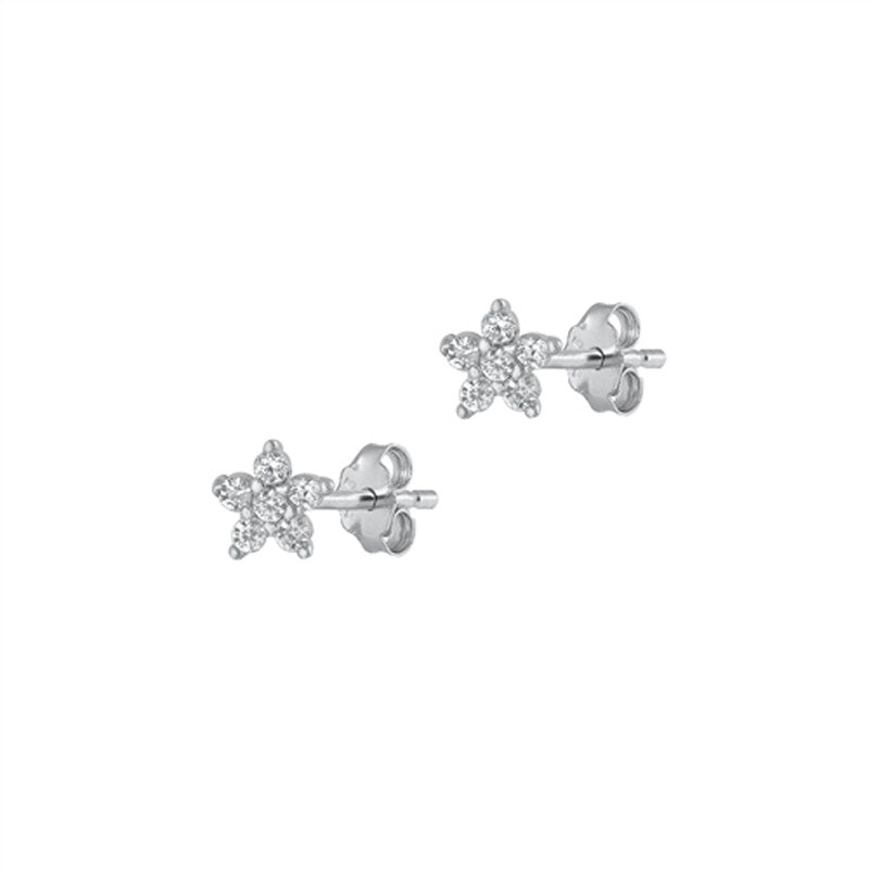 Small Flower Stud Earrings in Sterling Silver Cubic Zirconia