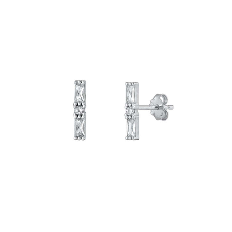 Baguette Cubic Zirconia Stud Earrings in Sterling Silver