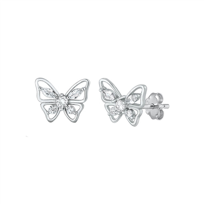 Butterfly Shaped Stud Earrings Cubic Zirconia Accent in Sterling Silver