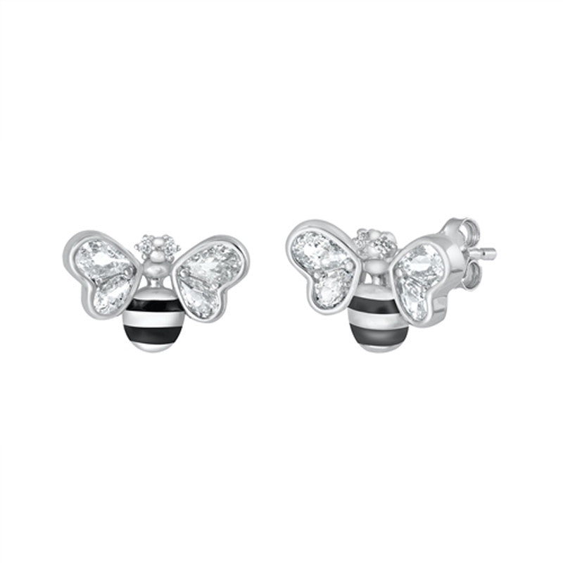Bumblebee Cubic Zirconia Stud Earrings in Sterling Silver