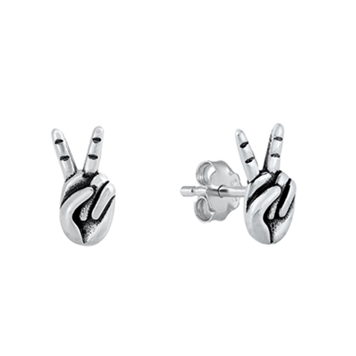 Peace Hand Sign Stud Earrings in Sterling Silver