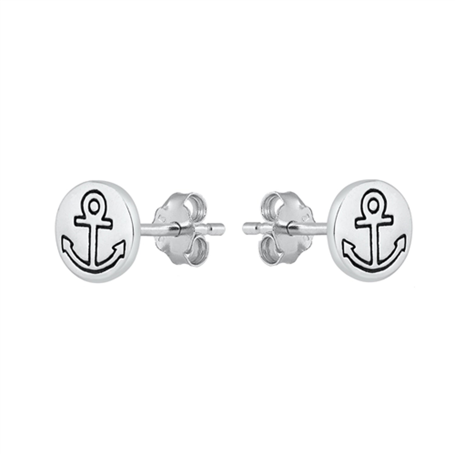 Nautical Small Anchor of Faith Stud Earrings in Sterling Silver