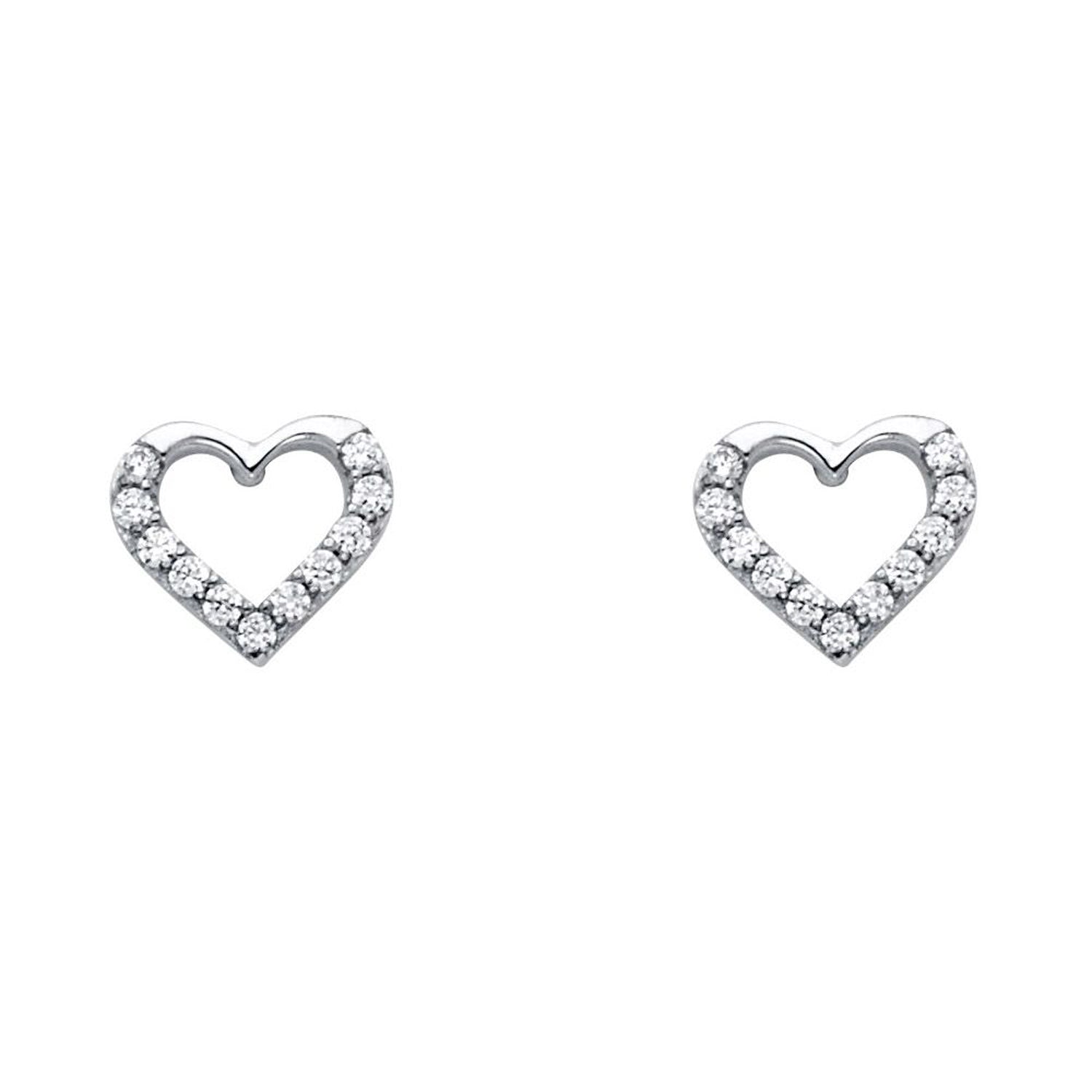Heart Frame Cubic Zirconia Stud Earrings in 14k Gold