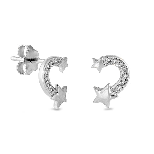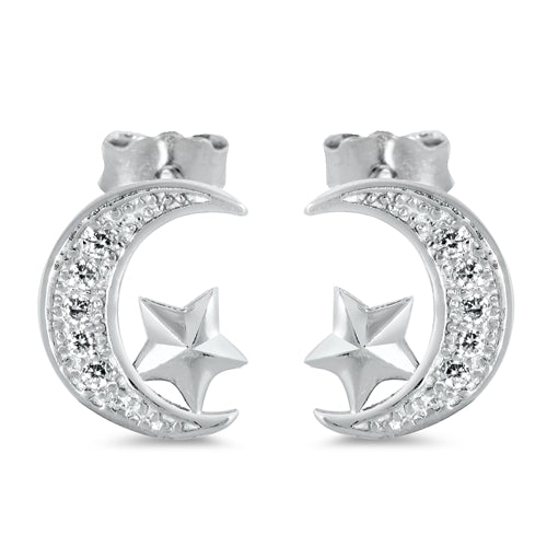 Half Moon with Tiny Star Stud Earrings Cubic Zirconia in Sterling Silver
