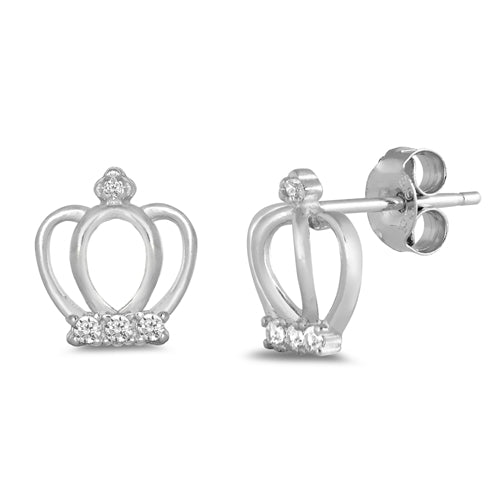 Royal Crown Stud Earrings Cubic Zirconia in Sterling Silver