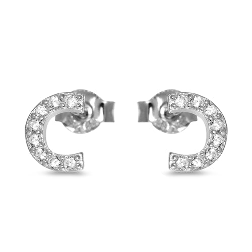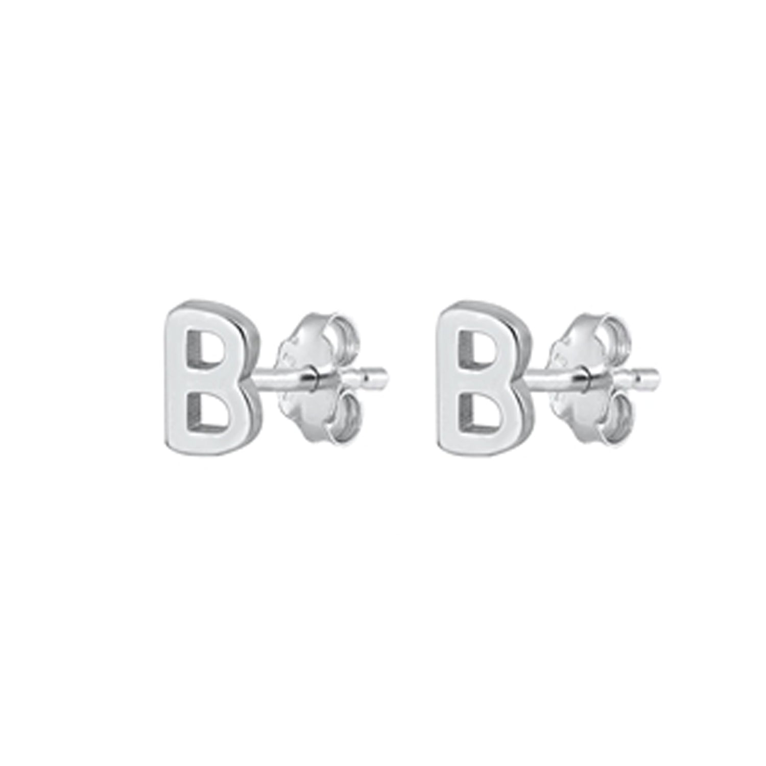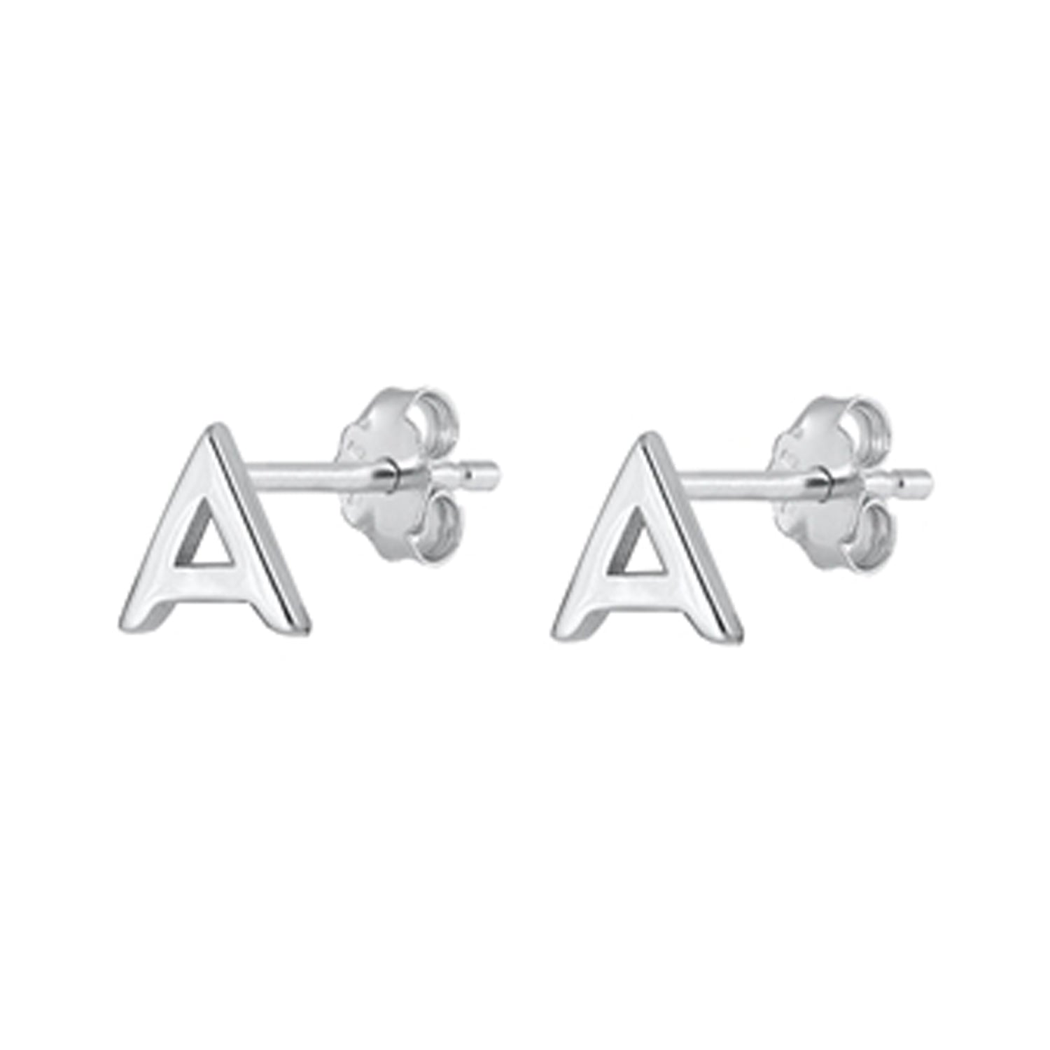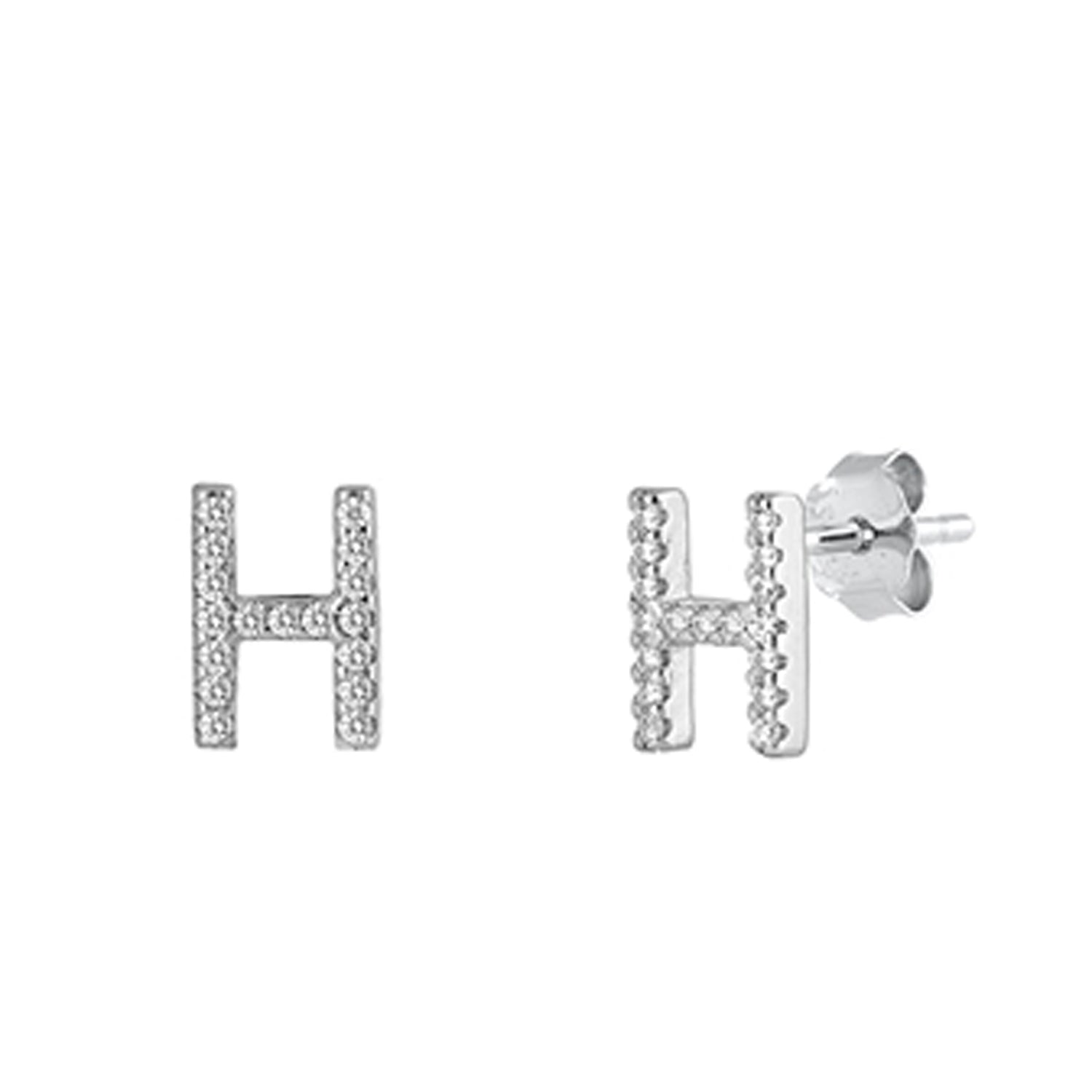 Initial Letter CZ Stud Earrings in Sterling Silver