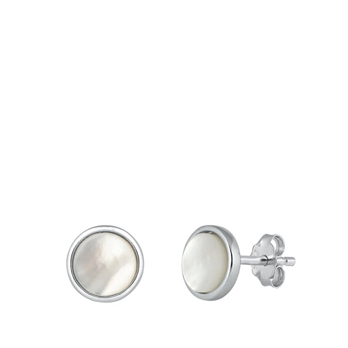 Minimalist Mother of Pearl Solitaire Stud Earrings in Sterling Silver