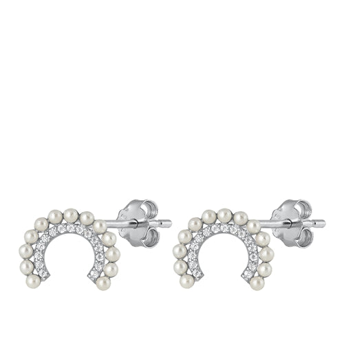 Pearls & Cubic Zirconia Arc Stud Earrings in Sterling Silver