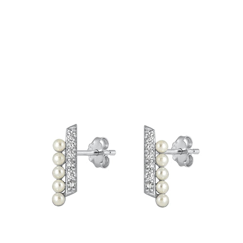 Cubic Zirconia & Pearls Linear Stud Earrings in Sterling Silver