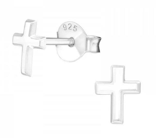 Plain Cross Stud Earrings in Sterling Silver