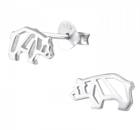 Bear Cub Stud Earrings in Sterling Silver