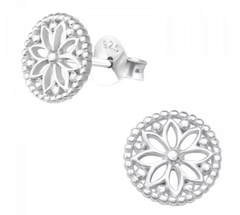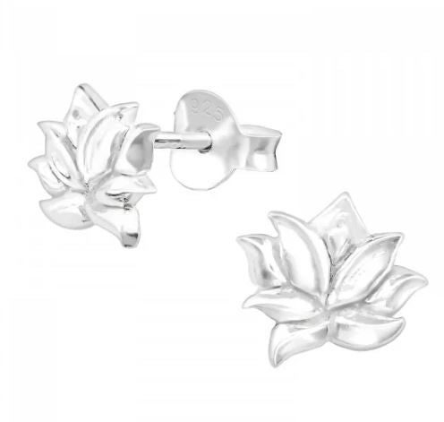 Lotus Flower Stud Earrings in Sterling Silver