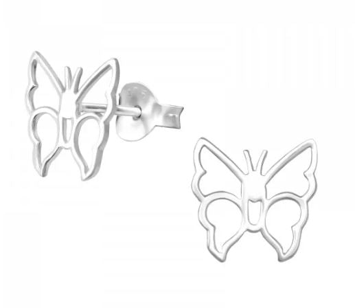 Butterfly Shape Stud Earrings in Sterling Silver