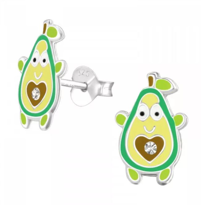 Avocado Fruit Stud Earrings in Sterling Silver