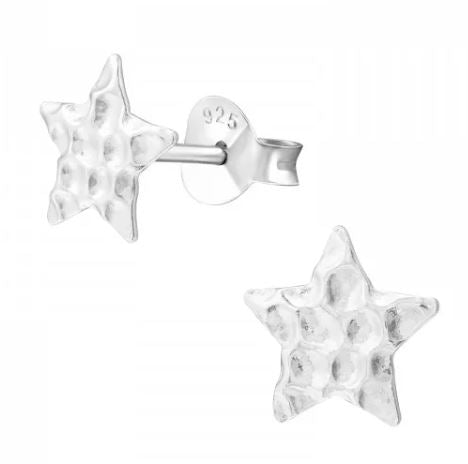 Textured Star Stud Earrings in Sterling Silver