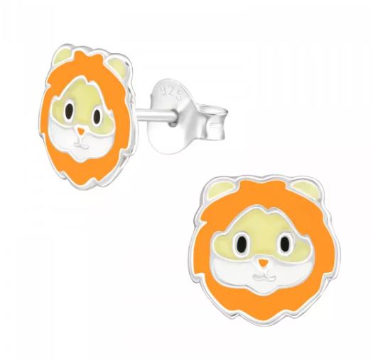 Lion Stud Earrings in Sterling Silver